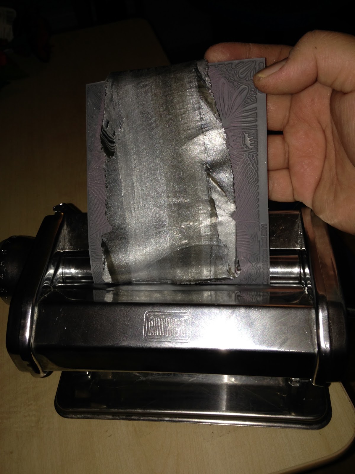 I run it a few times to the pasta machine using setting 5 or 6 to achieve the tone I like.