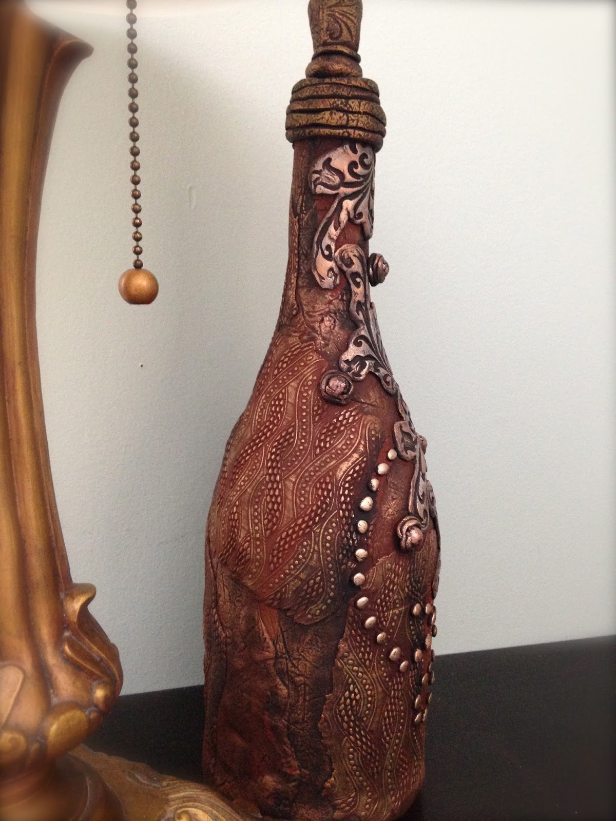 To finish the look of the bottle surface. I used gilders paste: african bronze and antique gold.