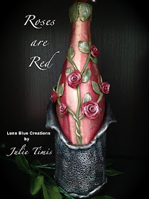 I am happy to share the latest addition to my wine bottle collection "Roses are Red" polymer clay wine bottle.