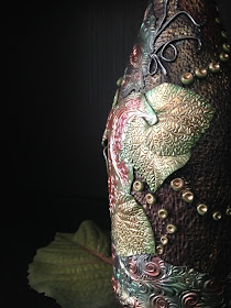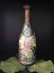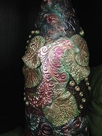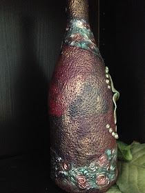 Another upcycled wine bottle project. I named this bottle my "Textured Silk" wine bottle. My inspiration to this project is the indian silk fabric. My intention was to create something bold and eye catching. I think the design and colours I picked works well for this project.