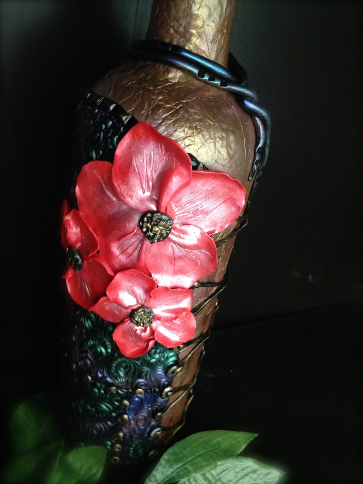 Hand sculpt flowers made a lovely touch. It turns the bottle to Fancy Red.