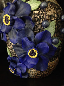 Flowers were sculpted using two blends of blue clay and I added the textured leaves.