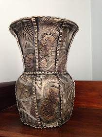 I found this unique shape vase and I thought I will turn it metallic looking.