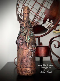 My patina and copper finish bottle. I added the rings and leaves for accent.