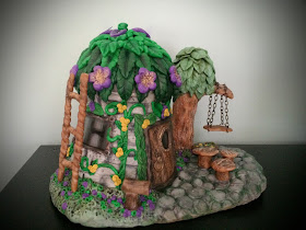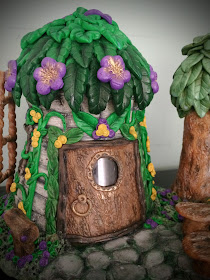 I am finally done with my latest fairy house. It is Another pretty addition to my collection. The progress has been slow but I am so happy that I completed it. The basic material used for this house is a small vase, about 4 inches tall, foil for armature and clay.