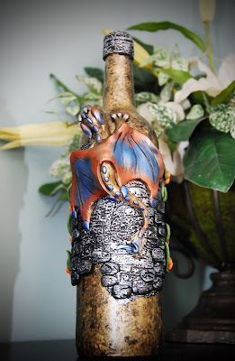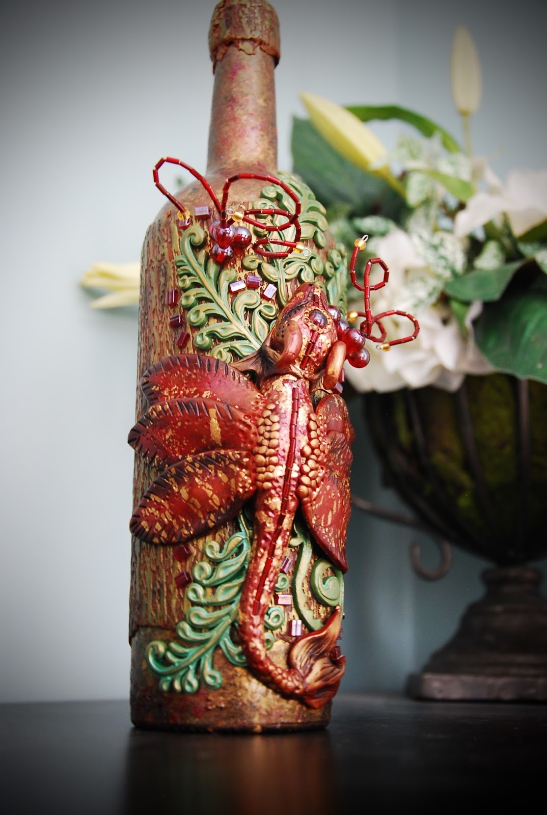 I added a lot of glass beads for accent and gold leaf on this dragon.