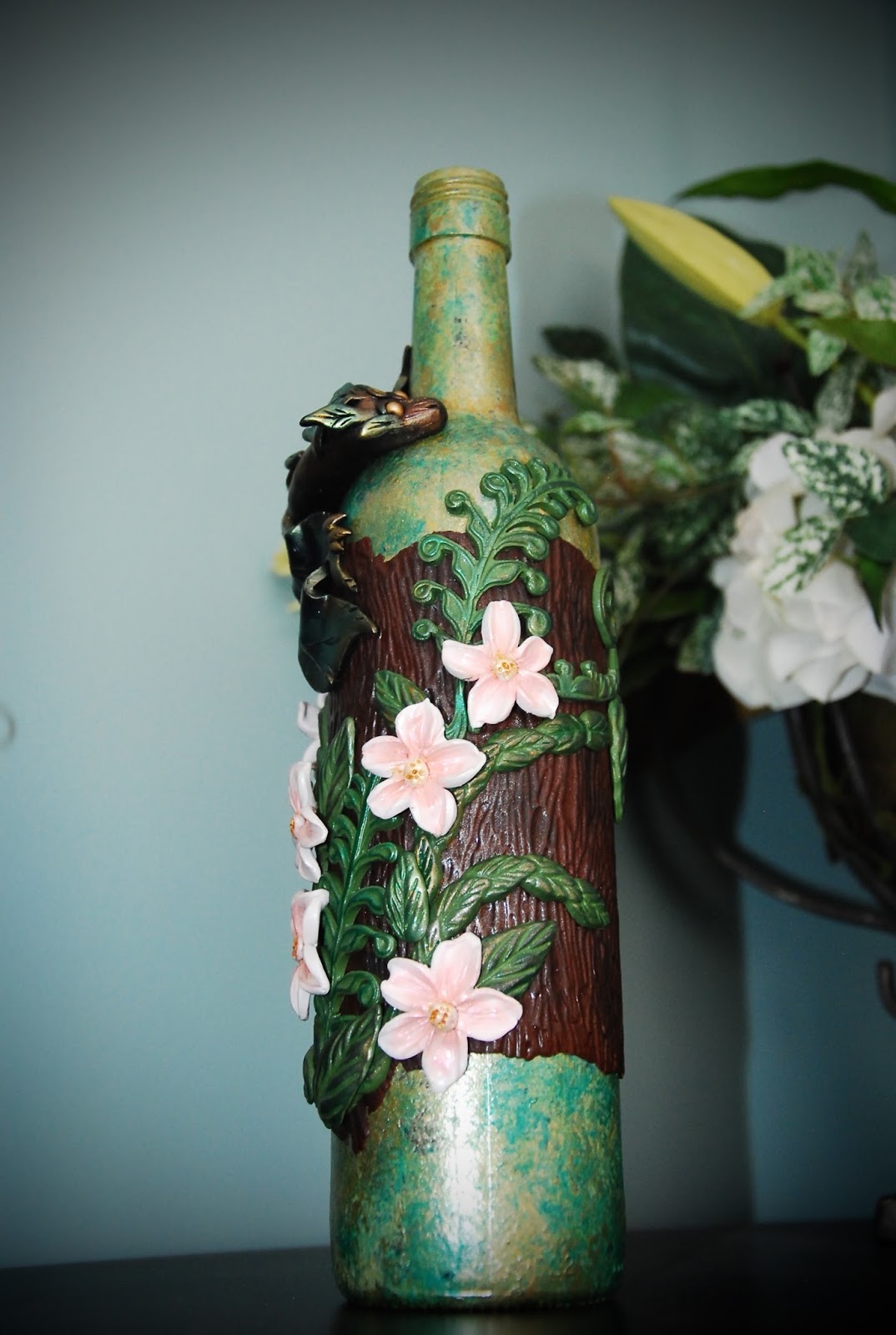 Bottles are partly hand painted and the rest is made of polymer clay.